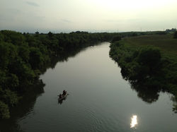 ![]() 緑に囲まれた当別川。普段は見慣れたこの景色も、川から眺めればどんなふうに見えるんだろうと、単純な好奇心から始まりました。 | ![]() この年の参加者はおよそ40人。地元の人から札幌や遠くはオホーツクの湧別まで、本当に様々な人が廃校になった川下小学校に集まりました。小学校の卒業生も参加してくれました。 | ![]() 小学校近くの河川敷からスタートします。ゴールの自然再生地区までおよそ4.5キロの道のり。 |
